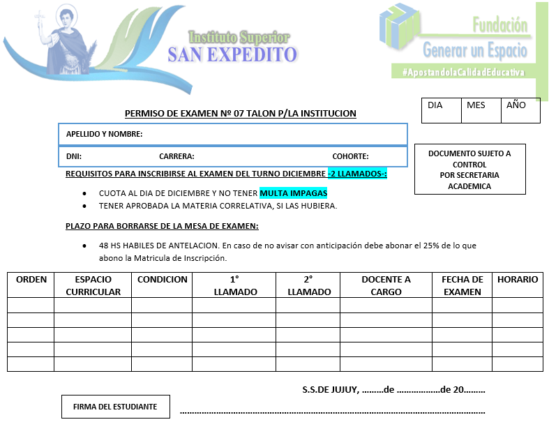 REQUISITOS PARA INSCRIBIRSE AL EXAMEN DEL TURNO DICIEMBRE -2 LLAMADOS-: